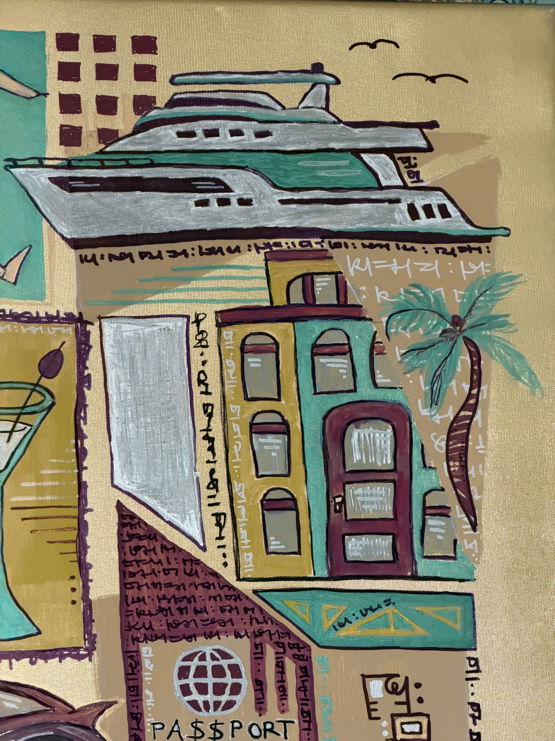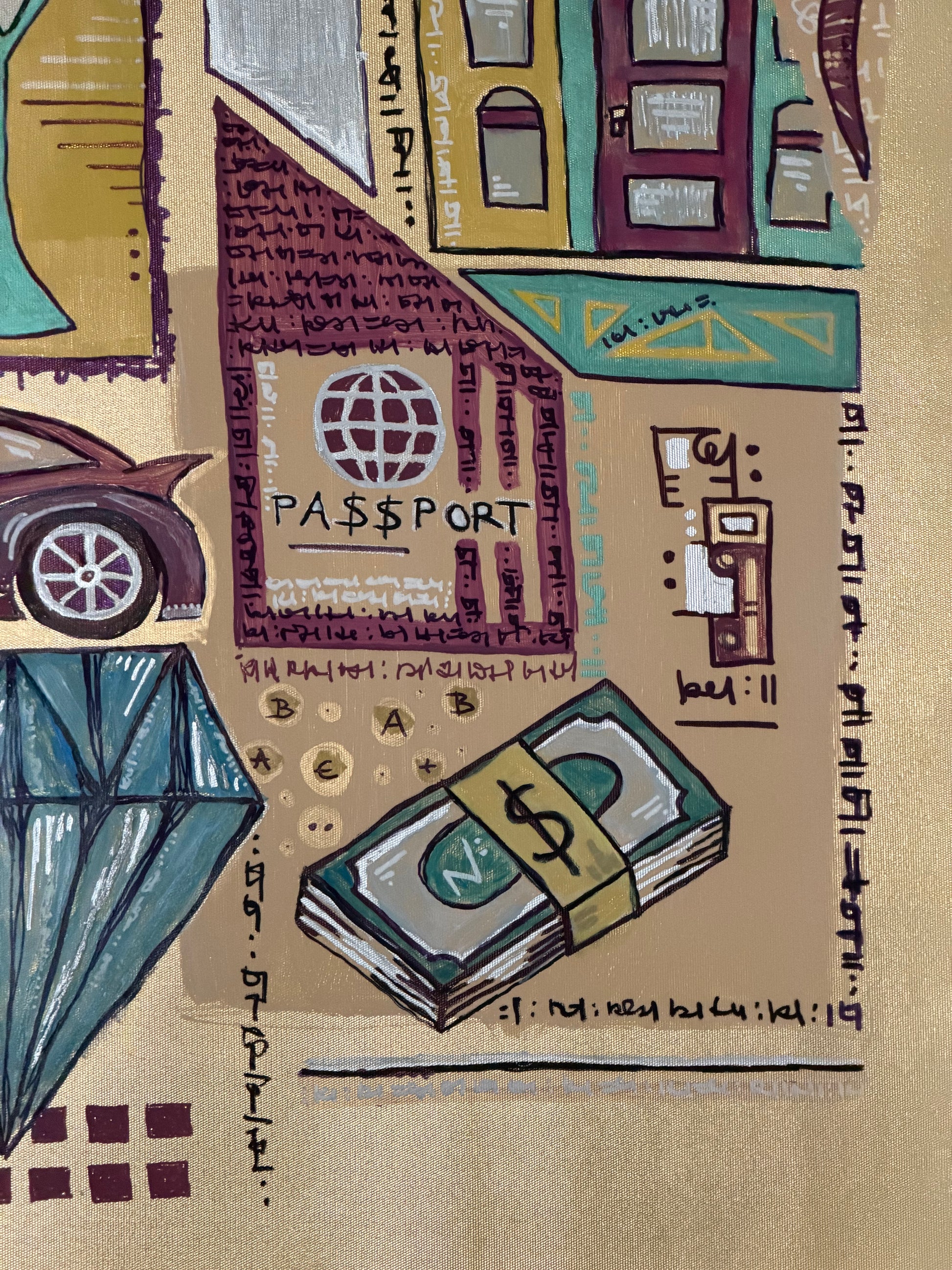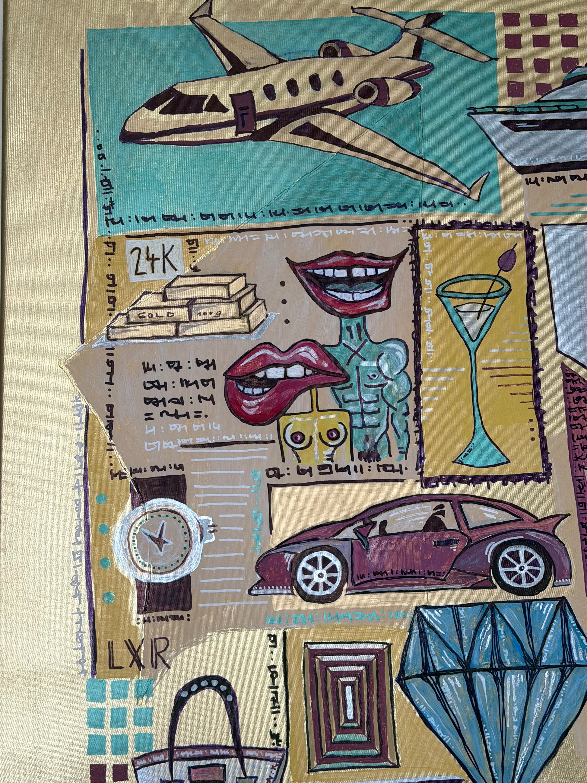 The Most Likable Painting is a conceptual piece worth 5 million dollars - because it combines together the prices of a private jet, yacht, fast car, designer bag, watch, mansion and other things like diamond, passport, gold bars, money stack and fancy drink.