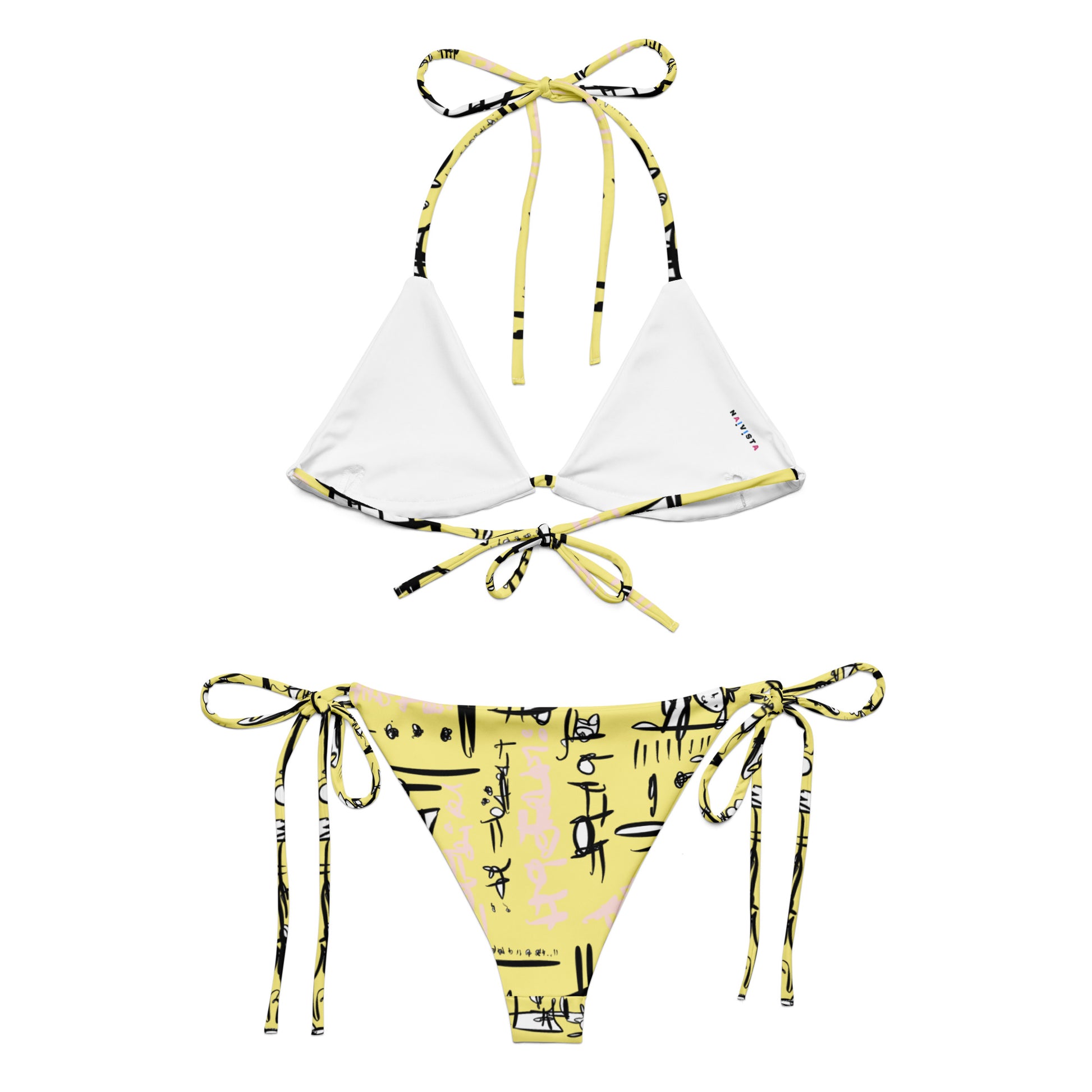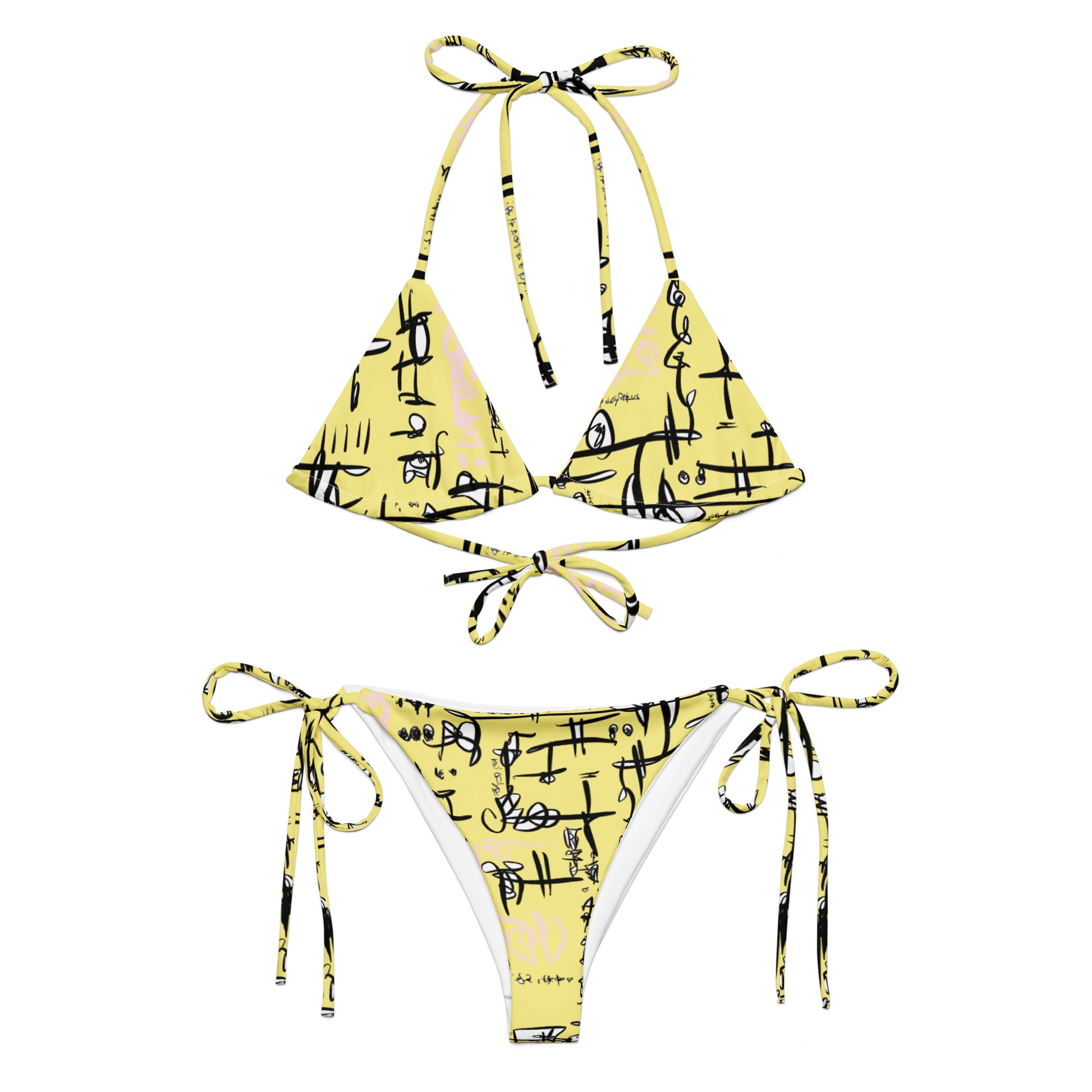 Recycled String Bikini set. It’s made from soft recycled polyester with double-layering and UPF 50+. Style the straps how you like, and get ready to swim!